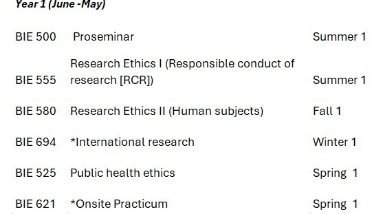 The Onsite Practicum provides practical experiences in i) research ethics reviews and audit; ii) communication skills and pedagogy that they use to co-teach an incoming cohort; iii) refining their research question and protocol; and iv) developing content for the local stakeholder workshop that they will contribute to teaching in their Capstone course.